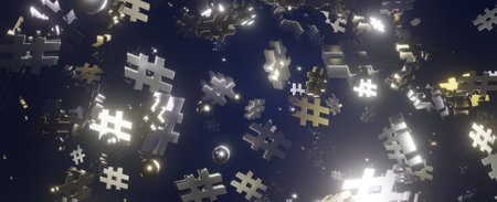 Fantasy Infinite Hashtags Futuristic Gold and Silver with Silver Colors Illustrative Banner Background Wallpaper Concept Of Social Media 3D Illustration Or 3D Rendering