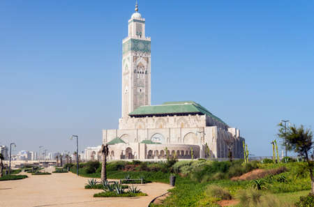 CASABLANCA, MOROCCO - JUNE 14, 2017: View of the Hassan II Mosque is a mosque in Casablanca. It is the largest mosque in Morocco and the one of the largest in the world.