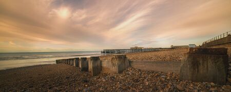 Atmospheric and Moody Long Exposure Photograph of Stone Pier at Brighton, East Sussex, England, UK with copy space.