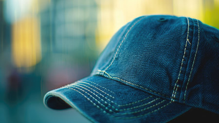 Close up of blue baseball cap with blur background