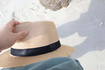 Hat in hand woman on the beach