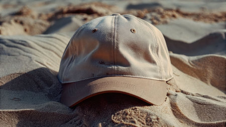 Solitary cap on sunlit dunes textured sand patterns evoking solitude in nature