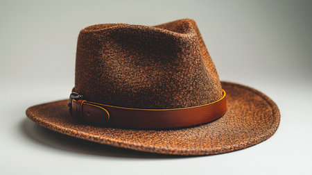 Brown hat on a yellow background.