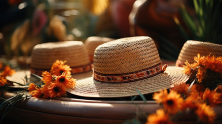 Summer hat and pool. Illustration Generative AI