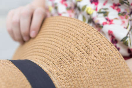 Hat's showing close up macro shot of woven straw texture on a wide brim hat keywords: straw, woven, texture,...