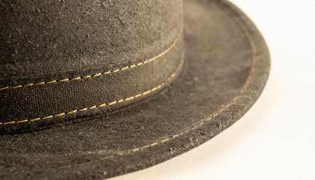 Close up hat brim stitching line detail with ample copy space right fashion accessory textile craftsmanship apparel design advertising background