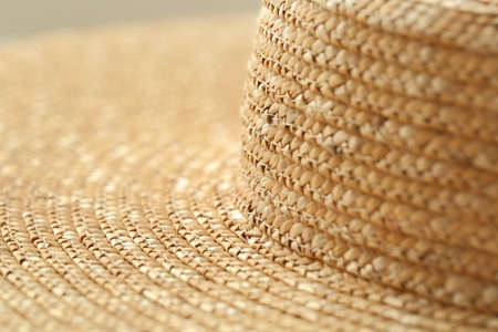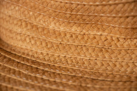 Close up shot to see the detail of straw hat weave texture detail. Craft and handmade product during summer season. Ideal for wallpaper, background with copy space for text,
