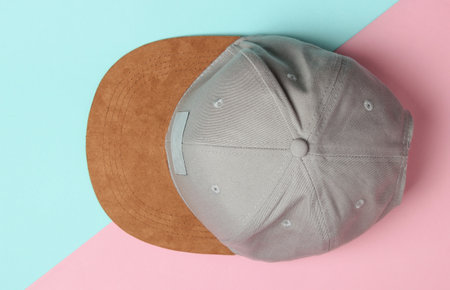 Stylish blue baseball cap, isolated on a soft blue and Pink Pastel