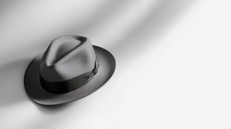 A classic gray hat displays elegance on a minimalist background, showcasing its refined design and texture alongside soft shadows and light.