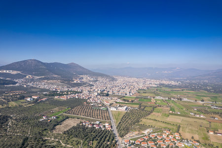 Panorama view from Acropolis of Pergamon or Pergamum to the new city Bergama.