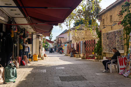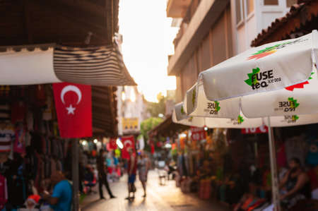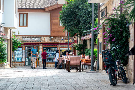 Antalya, Turkey - November 15, 2021: marketplace and street restaurant in Kaleiçi - the historical city center