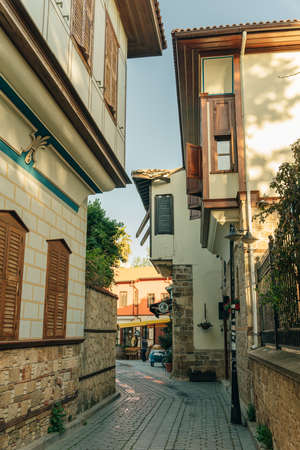 Antalya, Turkey - November 15, 2021: ancient tourist streets with hotels and restaurants in the historic center