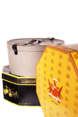 Packaging for clothes and hats. Large and small boxes. Antique design. Packaging for hats. Straw texture.