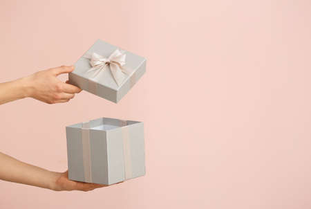 christmas, valentine, holidays gift box concept. Couple surprise gift box.