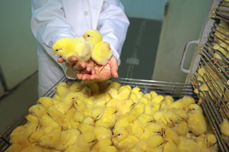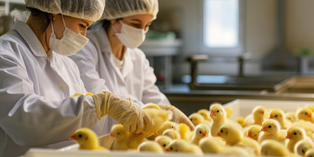 Care in Poultry Farming: Veterinary Professionals Examining Chicks
