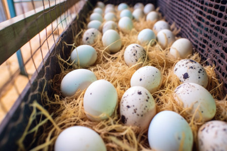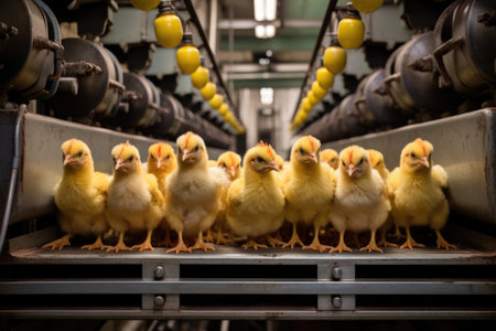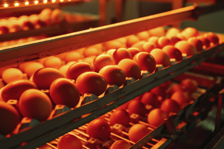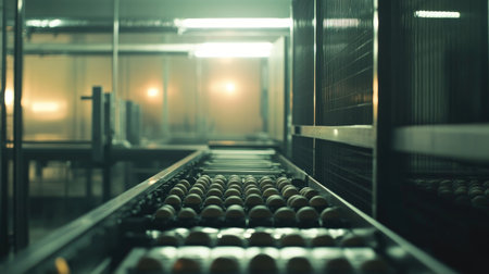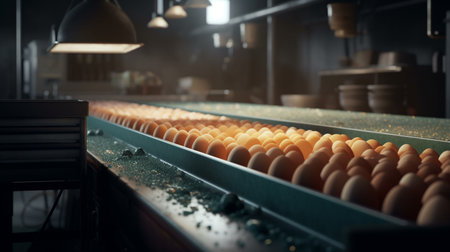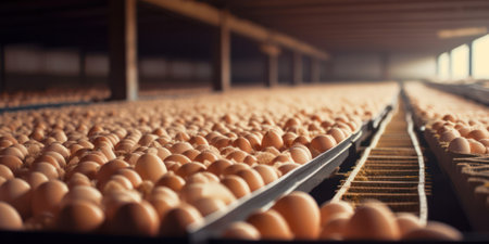 production. egg incubator and conveyor belt for subsequent packaging of eggs. Generative AI