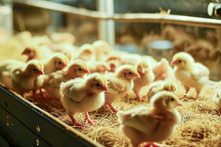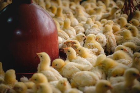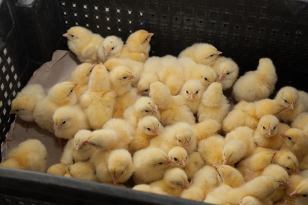day old broiler chicken. broiler chicken farm. bred and raised for meat production