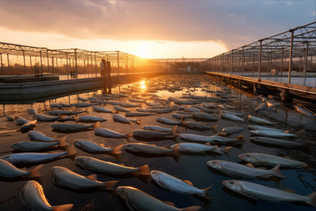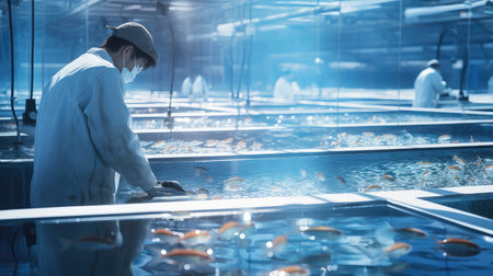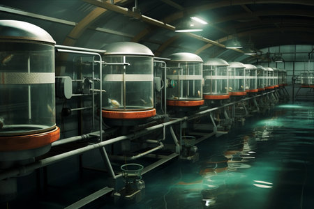 smart monitoring technology in aquaculture tanks, created with generative ai