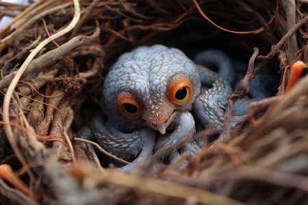 Close-up of a forest bird in its nest, intimate wildlife glimpse