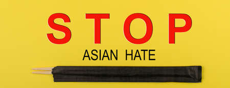 Stop Asian hate concept. Banner with chopsticks and words stop Asian hate