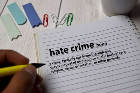 Definition of Hate Crime word with a meaning on a book. dictionary concept