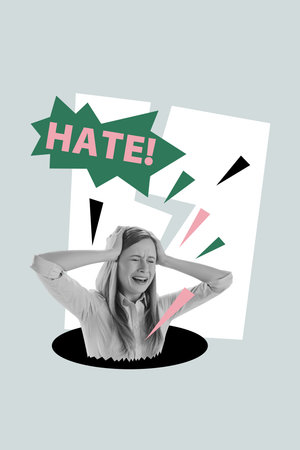 Hate speech or rudeness concept. Unhappy face and quote bubble.