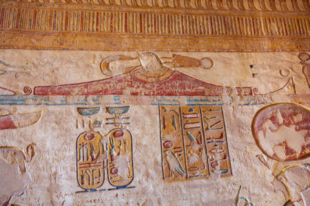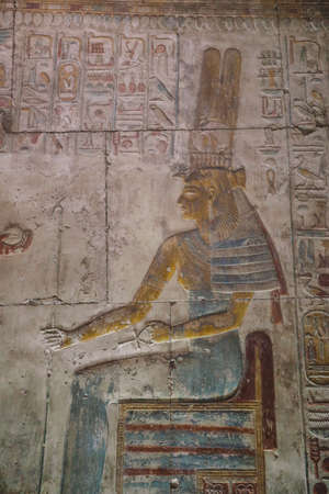 Ancient Egyptian Drawing on the Walls of the temple of Seti I also known as the Great Temple of Abydos in Kharga, Egypt