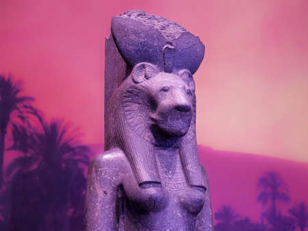 TURIN, ITALY - CIRCA MARCH 2017: Statue of goddess Sekhmet daughter of the sun at Museo Egizio (meaning Egyptian Museum)