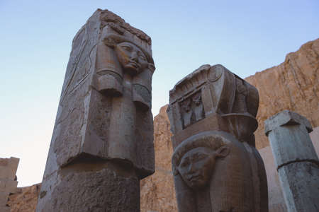 Statues of the goddess Hathor in the Hathor shrine of the Temple of Hatshepsut near Luxor, Egypt