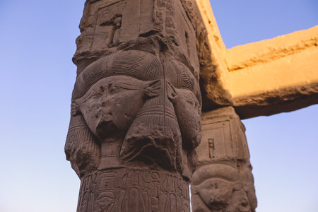 Hathor Column at the Mortuary Temple of Hatshepsut in Deir El Bahari, Luxor, Egypt
