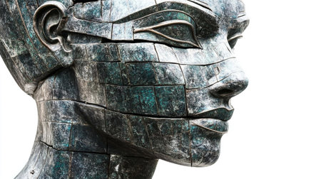 Close-up of the face of an ancient statue of a pharaoh