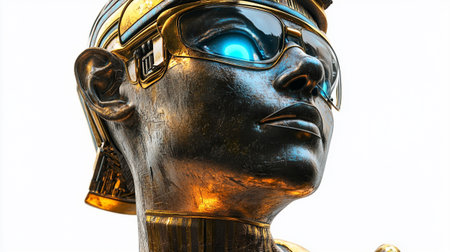 Close-up portrait of a beautiful Egyptian woman in a golden helmet