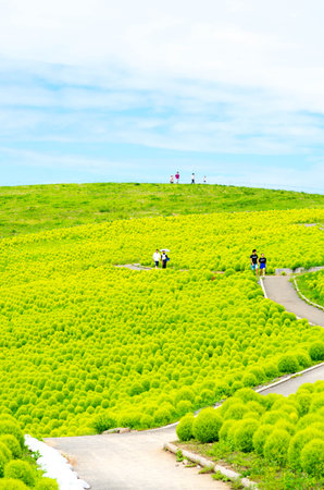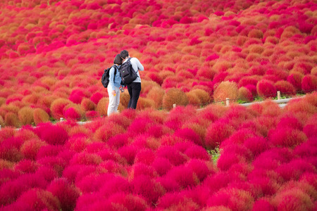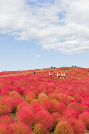 Beautiful kochias hill in autumn season at Hitachi seaside park , October 30, 2016, Ibaraki prefecture , Japan