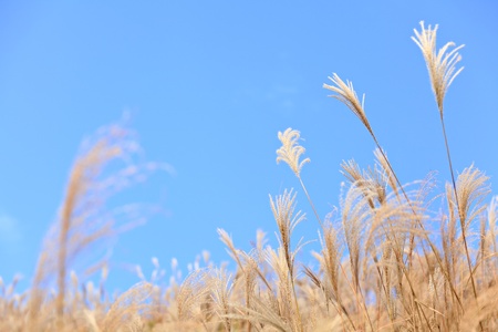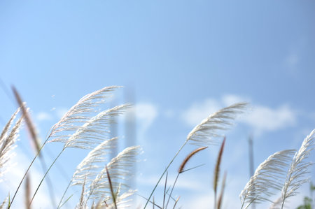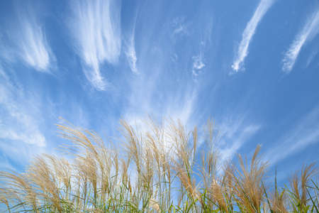 The refreshing blue sky of autumn and the susuki of the meadow (Fukuoka Prefecture)
