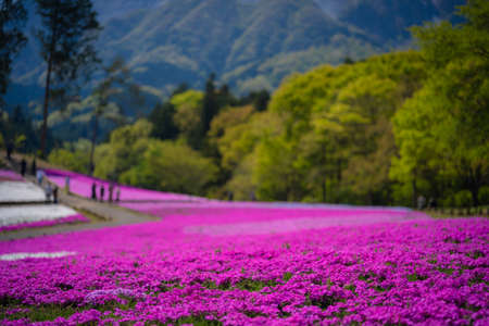 Beautiful landscape, meadow of Phlox Subulata in Shibazakura festival, Japan