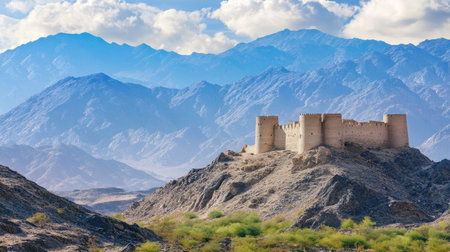 An ancient fortress stands proudly on a rocky mountain, surrounded by stunning landscapes and majestic mountains. A perfect destination for adventurers and history lovers.