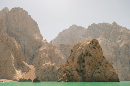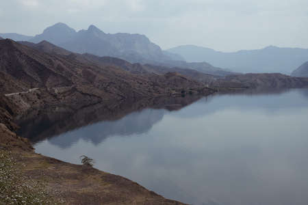 Mountains around the reservoir lake of the Wadi Dayqah Dam in Oman