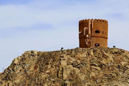 Typical Oman Watchtower with cellular and microwave antennas, in Mutrah, Muscat, Oman, Middle East