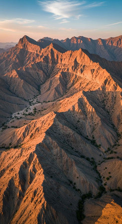 Aerial view of desert mountains at sunset, Leh, Ladakh, India