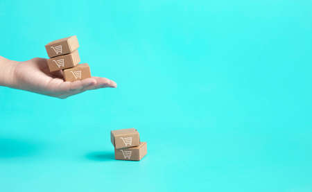 Business e-commerce or online shopping concepts with female hand and product box order.marketplace and transportation service.copy space