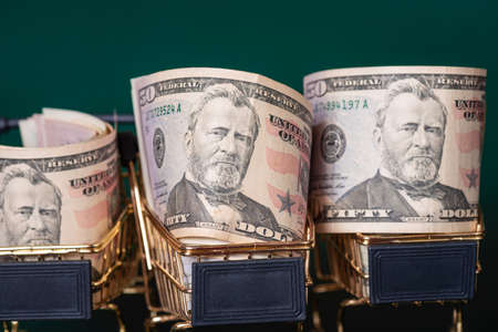 Paper banknotes dollars on a green background. Banking and finance concept.