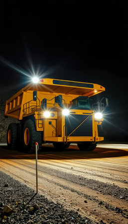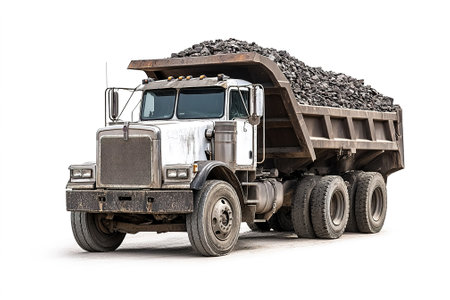 Heavy Duty Mining Dump Truck Loaded with Coal Against Vibrant Red Rock Quarry Background High Resolution Industrial and Mining Photography for Commercial Use and Visual Projects AI Generative