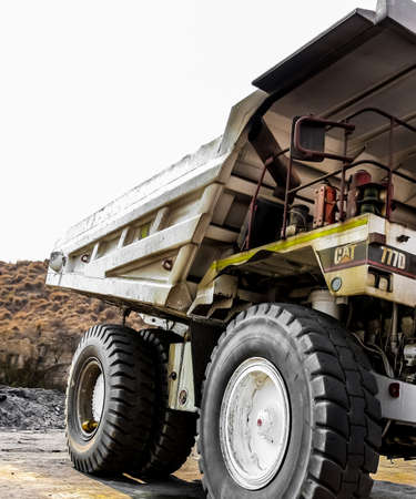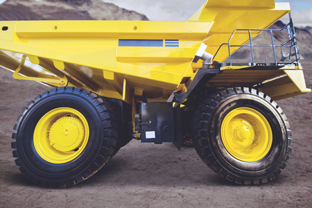 Heavy mining truck in mine and driving along the opencast. Photo of the big mine truck, The career heavy-load super car.