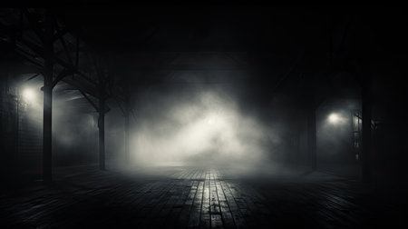 Mysterious Shadows in a Foggy Urban Alleyway