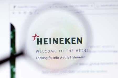 Saint Petersburg, Russia - 29 March 2020: Heineken Holding business company logo visible on screen. Corporation website page close-up, Illustrative Editorial.
