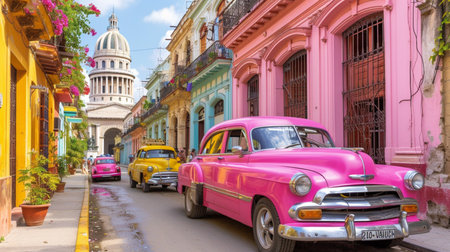 colorful and vibrant Havana cityscape, Cuba. Travel and tourism.
