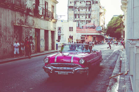 10 July 2018, Havana, Cuba: Vintage cars are a common sight in the streets of Havana.