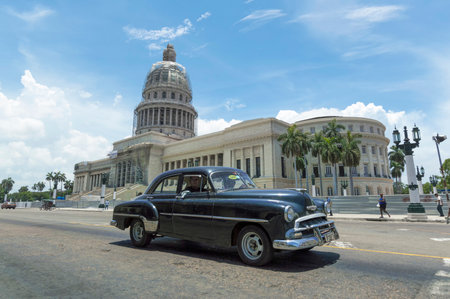 HAVANA, CUBA - JUNE 22, 2015: Classic car in front of the Capitolio in Havana, Cuba
