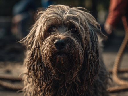Small, cute terrier sitting outdoors, looking at camera, playful and fluffy generated by artificial intelligence