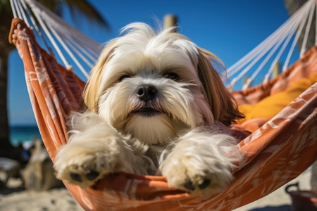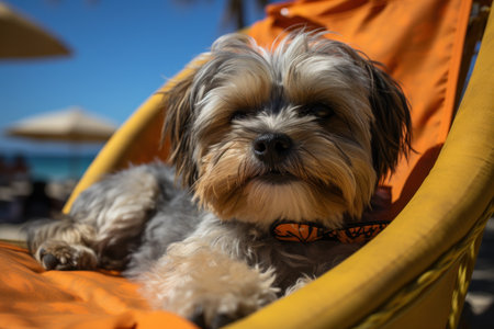 Dog Laid-Back Shih Tzu Unwinding on Vacation on the beach. Generative AI